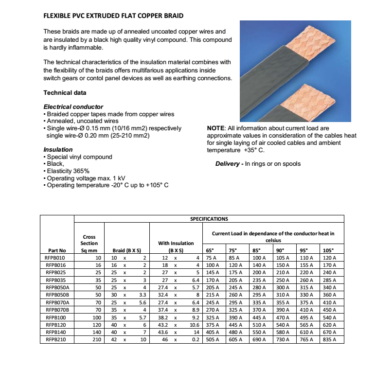 FLEXIBLE PVC EXTRUDED FLAT COPPER BRAID