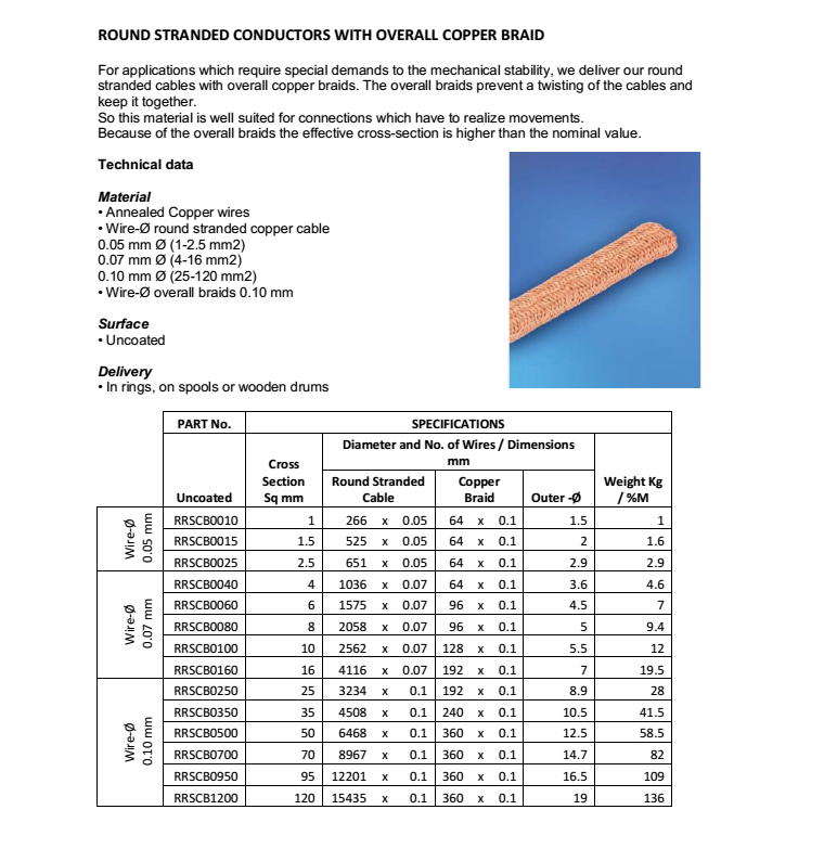ROUND STRANDED CONDUCTORS WITH OVERALL COPPER BRAIDS
