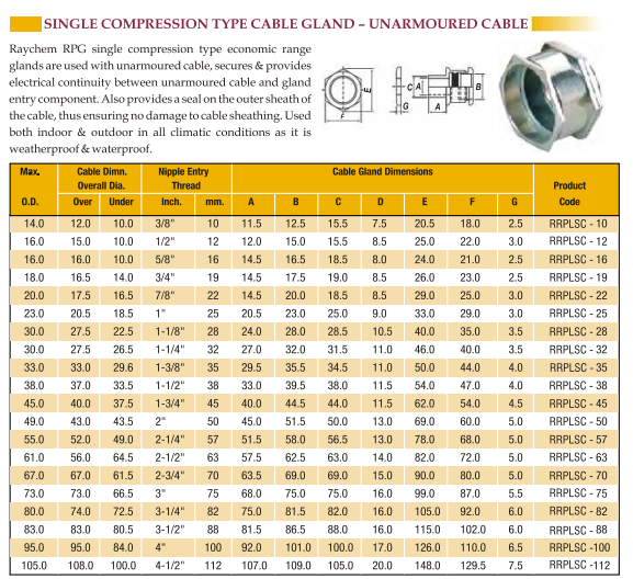 SINGLE COMPRESSION TYPE CABLE GLAND - UNARMOURED CABLE