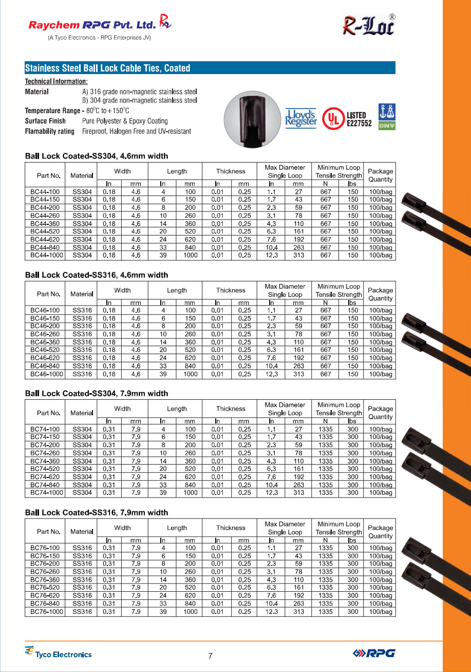 DÂY THÍT INOX DẠNG KHÓA BI, PHỦ NHỰA - STAINLESS STEEL BALL LOCK CABLE TIES, COATED