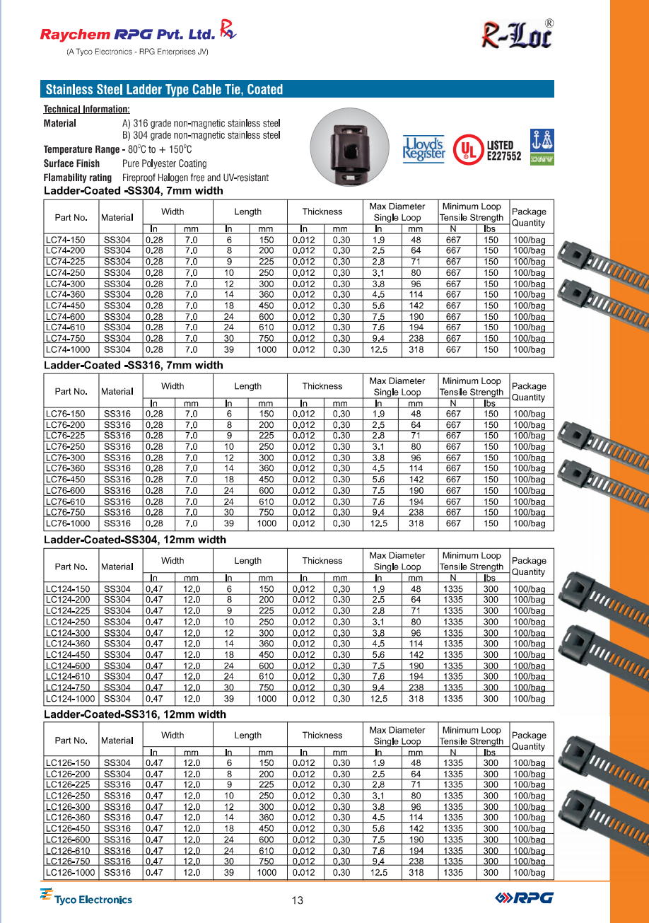 DÂY THÍT INOX DẠNG THANG IE, PHỦ NHỰA - STAINLESS STEEL LADDER TYPE CABLE IE, COATED