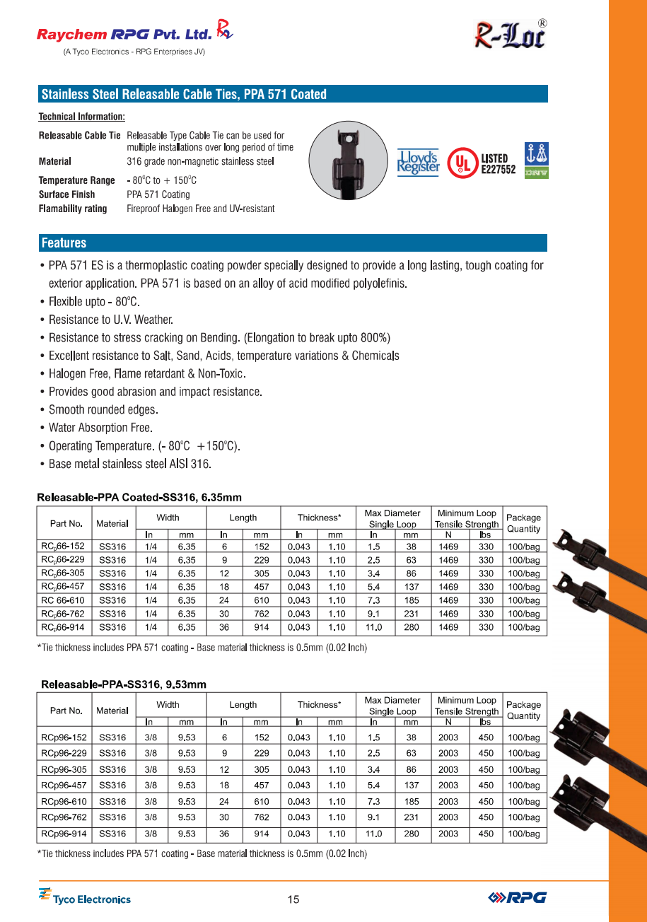 DÂY THÍT INOX PHỦ NHỰA PPA 571- STAINLESS STEEL RELEASEBLE CABLE TIES, PPA 571 COATED