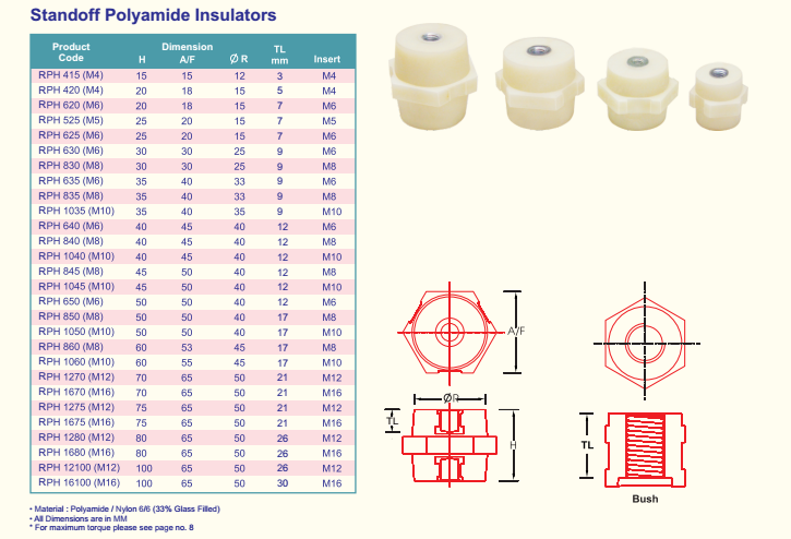 SỨ CÁCH ĐIỆN POLIME - STANDOFF POLYAMIDE INSULATORS