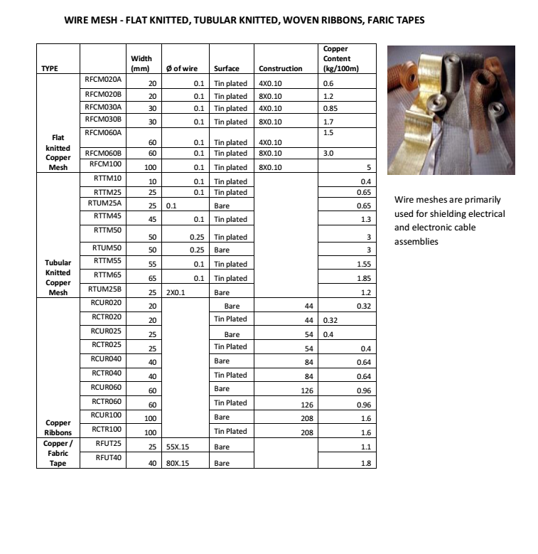WIRE MESH - FLAT KNITTED, TUBULAR KNITTED, WOVEN RIBBONS, FARIC TAPS